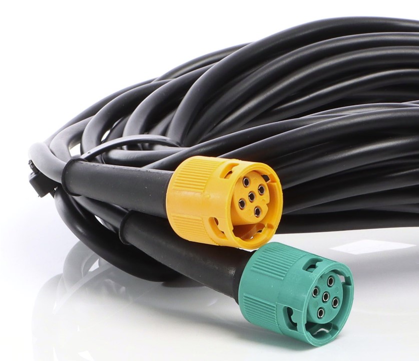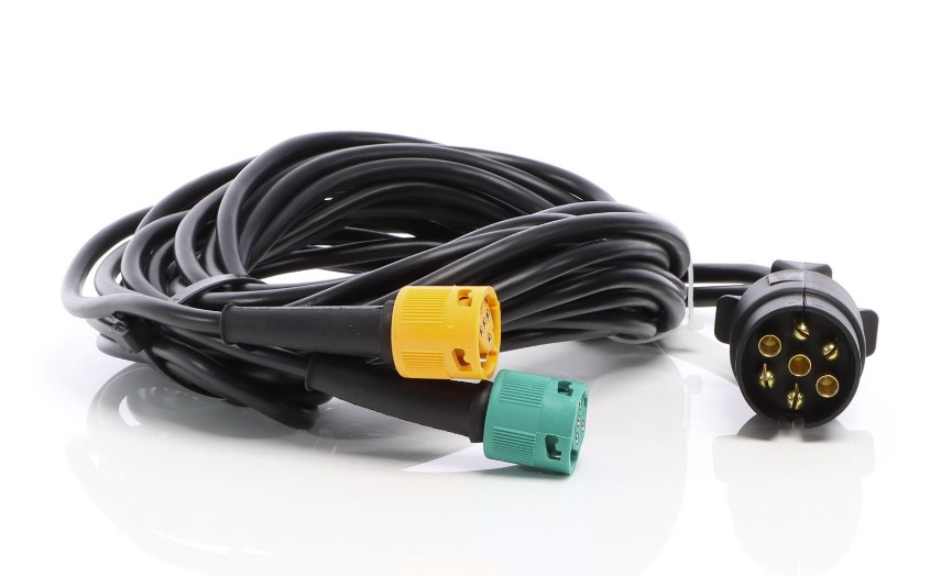 Αυτό το 7-πολικό καλώδιο ρυμουλκούμενου XPOtool έχει μήκος 5 μέτρα και διαθέτει δύο 5πολικούς συνδέσμους σε πράσινο και κίτρινο χρώμα. Η διατομή των καλωδίων είναι 5 mm².